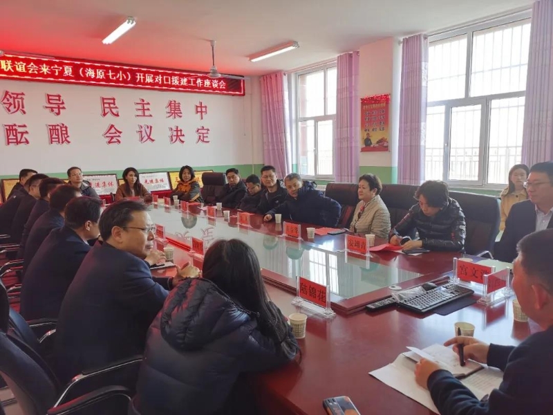 考察团一行到海原第七小学考察了2016年上海知联会援建的“知联楼”建设使用情况,参观了学校教学基础设施,同海原县教育局负责同志和学校师生座谈交流了后续对口援建需求与计划,拟定对困难家庭学生继续进行帮扶,并择机举办夏令营开阔师生视野。