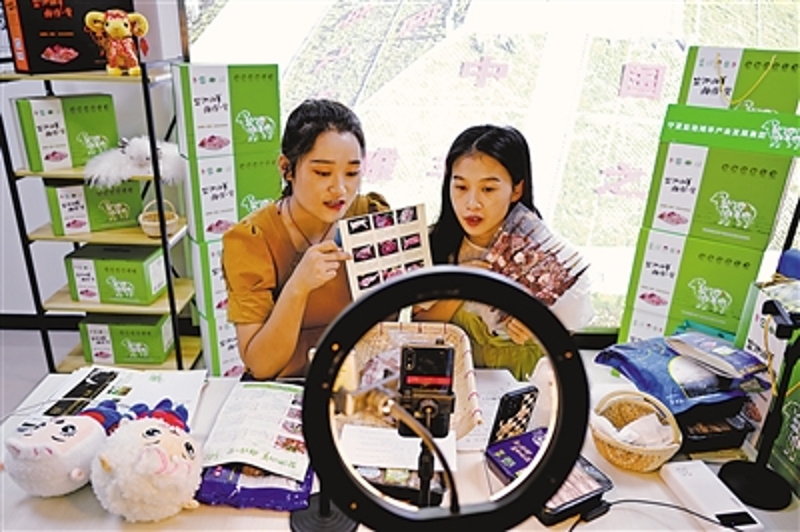 盐池县狮城宁好电商网批(西部)运营基地的直播间,主播向全国网友推荐盐池滩羊 记者 王鼎 摄