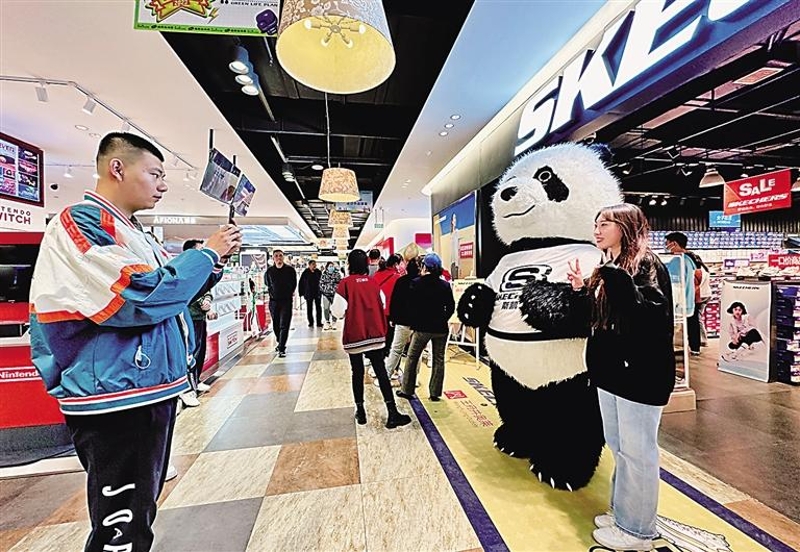 品牌销售店门前可爱的吉祥物拉近了商家与消费者的距离。