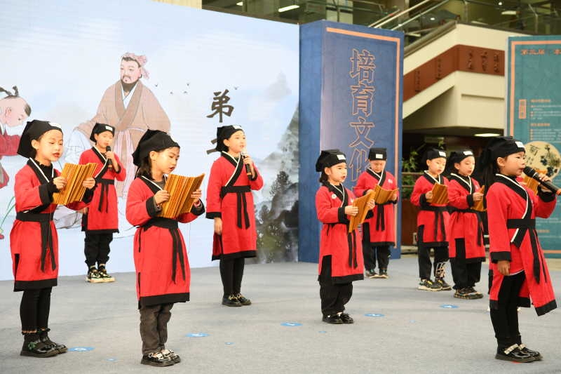 4月23日,由自治区文化和旅游厅主办,宁夏图书馆、宁夏图书馆学会共同承办的“书香满宁夏 阅享新时代”世界读书日暨公共图书馆服务宣传周系列活动在宁夏图书馆拉开帷幕。图为银川市小夫子国学馆的孩子们在吟诵国学经典。 记者 王刚 摄