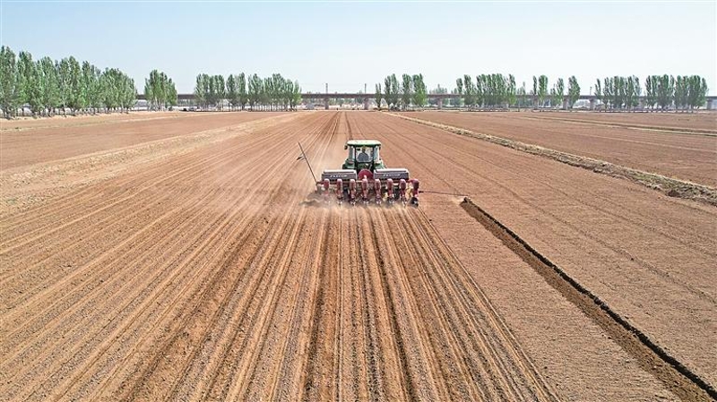 4月26日,永宁县杨和镇旺全村村民驾驶农机进行玉米标准化播种。永宁县按照“宜粮则粮、应种尽种”的原则积极实施作物品种内部轮作,推行小麦套复种大豆、大豆玉米带状复合种植等模式。同时,在确保粮食生产安全的基础上,探索多种粮油轮作方式,形成耕地轮作休耕与保障粮食、油料等主要农产品供给的良好互动。 记者 王鼎 党硕 摄
