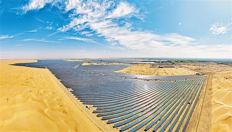 7月9日,中卫市沙漠光伏产业园内,整齐排列的光伏板形成了沙漠中的“海洋”。近年来,我区在保护好生态环境的基础上开展光伏治沙试点,科学发展沙产业,从植被恢复、节能减排、观光旅游协调推进中实现光伏治沙、经济效益和社会效益的共赢。记者 王猛 摄