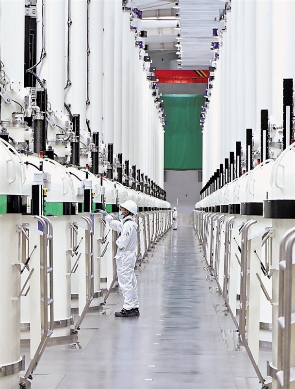 宁夏中环50GW太阳能级单晶硅材料智慧工厂的建设运行,进一步推动单晶硅材料产业链的发展,助力光伏产业降本增效。 记者 党硕 摄