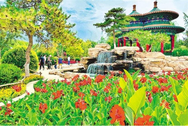 7月26日,银川花博园内的月季花、四季海棠等竞相绽放,吸引游客游园赏花,拍照打卡。记者 马楠 摄