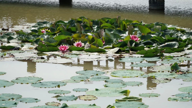 从沈家河水库向上游走,不久便到了清水河国家级湿地公园核心区,这里荷花竞相盛开,清香扑面,朵朵荷花掩映在碧绿的荷叶中,在木栈道上行走,走入了一幅“接天莲叶无穷碧 映日荷花别样红”的画卷。