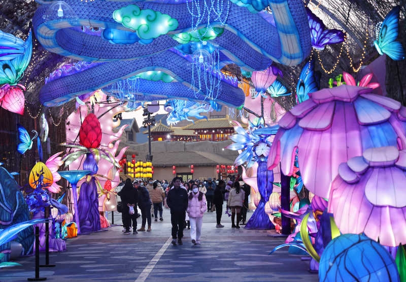 1月1日晚,贺兰山漫葡小镇花灯闪烁、人头攒动,诙谐的民俗表演、青春洋溢的说唱,让人们在欢笑声中迎来新年的第一天。今年“漫葡·看见贺兰”冬季版项目以“千灯耀宁夏 福起贺兰山”为主题,以“花灯+演艺”为展演形式,让游客赏花灯、观民俗、吃美食尽享西北年味年俗。 记者 王猛 李涛 摄