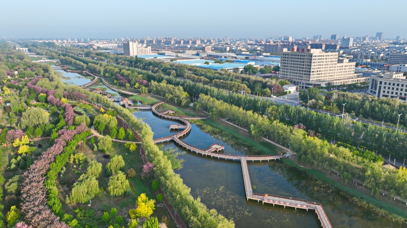 这里原本是一条泄水沟,周边杂草丛生,2016年被改建为水系景观公园。公园水系中栈道纵横,两岸各色花木缤纷交错,一阵微风拂过,香气扑鼻而来,沁人心脾。