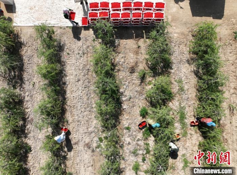 中新社银川6月12日电 (记者 李佩珊 于晶)宁夏头茬枸杞迎来了一年一度的丰收采摘季节。6月12日,第七届枸杞产业博览会枸杞开园仪式在宁夏中宁、贺兰同步举行。