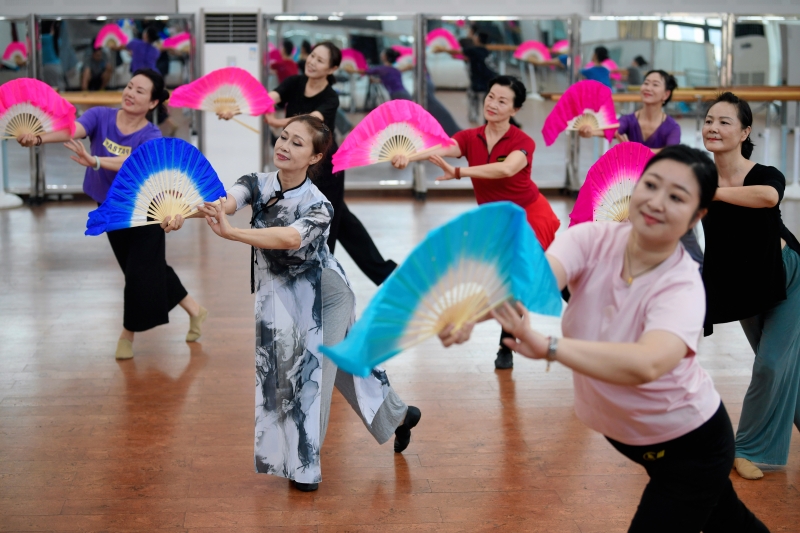 9月3日,银川市文化艺术馆舞蹈室,学员跟老师学跳舞。银川市文化艺术馆馆办老年大学2024至2025学年公益培训班9月2日开课,共开设声乐、舞蹈、器乐、美术、书法、传统文化戏曲、剪纸、编结等22个班,招收学员700余人。记者 马楠 王洋 摄