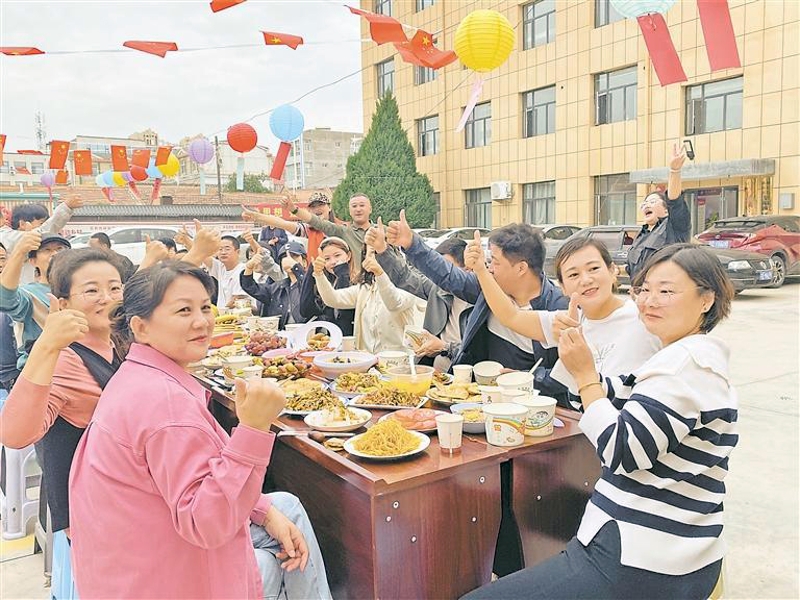 居民其乐融融,共享美食盛宴。 记者 马忠 摄