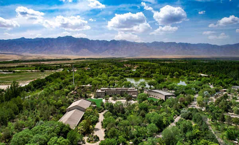 6月9日,从空中俯瞰,层层叠叠的防护林屏障般守护着酒庄葡萄园。宁夏贺兰山东麓葡萄酒原产地域产品保护的核心区域,一个个特色鲜明的葡萄酒旅游项目已成为我区的文旅新地标。记者 王晓龙 摄