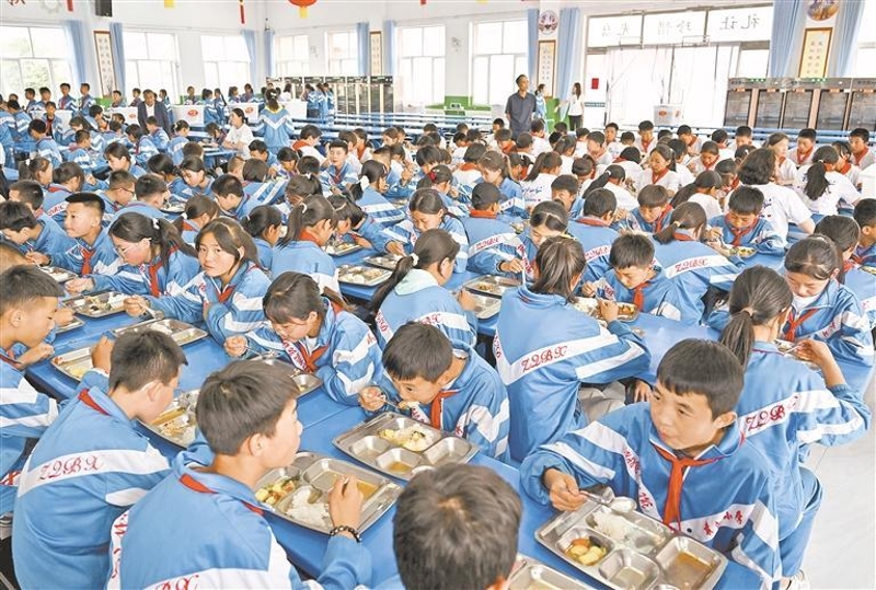 6月24日,西吉县吉强镇袁河小学学生在宽敞明亮的标准化餐厅内吃午饭。该校是一所农村寄宿制学校,也是闽宁协作教育帮扶重点学校。近年来,西吉县先后整合闽宁协作和闽籍企业援助资金414万元,实施校址搬迁、改造提升、硬件配套等项目,持续改善提升办学条件,建成850平方米标准化餐厅,深化“互联网+教育”应用等,让农村学生享受到闽宁协作教育帮扶的成果。 记者 左鸣远 摄
