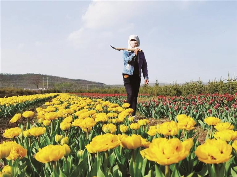 花农在巡护燕家山生态园郁金香园。近年来,泾源县把“六权改革”作为创新发展的新引擎,引进宁苗生态科技公司,探索出“社会资本参与生态建设”的新模式。 陈翠英 摄