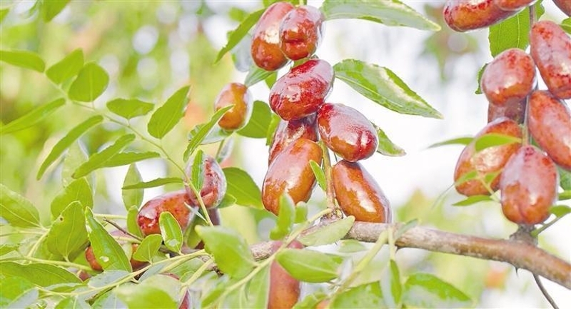 一颗颗饱满的长枣在阳光下泛着诱人的光泽。记者 马雨馨 摄