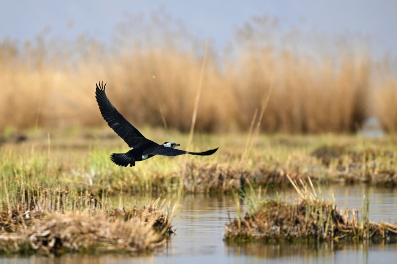 4月7日,一只鸬鹚低空掠过水面。近年来,宁夏沙湖景区通过退渔还湖、退耕还湿、清淤疏浚、水系连通等工程,保留水域、沼泽、草甸、荒漠等多元生态板块,为不同鸟类营造多层级栖息环境。最新数据显示,沙湖鸟类种类从2011年的198种增加至目前的216种。沙湖已成为东方白鹳、小天鹅、白琵鹭等珍稀鸟类的重要迁徙驿站。宁夏日报报业集团全媒体见习记者 乔新宇 实习生 马国福 摄