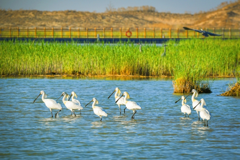 4月14日,在宁夏沙湖鸟岛,一群候鸟在春日的水面上栖息。作为候鸟迁徙的关键驿站,沙湖通过系统性生态治理,从劣Ⅴ类水质提升至Ⅱ类,成为216多种鸟类的天堂。如今,这里碧水金沙交织,芦苇摇曳,勾勒出一幅人与自然和谐共生的塞上画卷。宁夏日报报业集团全媒体记者韩胜利 摄