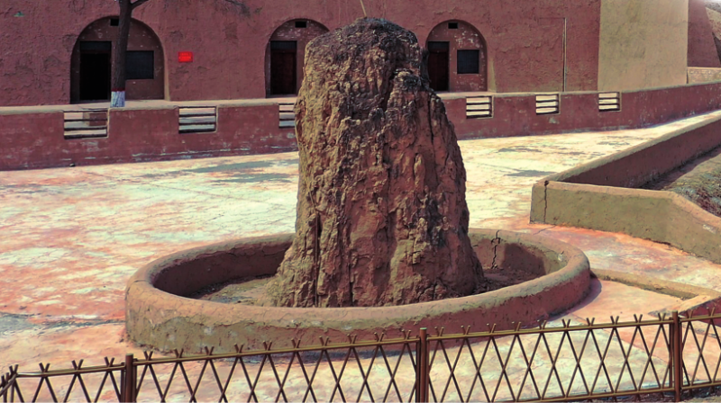 在李塬畔盐池县委机关旧址左后方,新修建的游击队小道顺着山势蜿蜒向前延伸至沟底。而在旧址修葺一新的六口窑洞前,有个类似雕塑的土柱,上面插着一面小红旗迎风招展,小旗子下方还有一根麻绳拴着。孙世瑞告诉我们,很多人以为这是个装饰品,其实这是一个消息台,上面的旗子是当时游击队用来传消息的,一旦发现敌情就立即放下旗子,通知部队做好战斗准备。它和游击队小道是遥相呼应的。