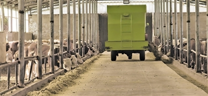 工人开着撒料车钻进一座又一座养殖棚,草料顺着漏斗均匀地撒在饲喂台上,散发着青贮饲料的香味。牛儿们一字排开,各就各位,把草料卷入口中。工人马治清挥动扫帚,把散在平台上的饲料扫到牛嘴边,打开水龙头,清亮亮的水注入饮牛槽。“牛场现在机械化喂牛,我们7个人就喂了700多头牛呢。”先进饲喂技术吸引不少养牛人来学习取经,牛场工棚里住着几名从江西、湖南等地慕名而来的“粉丝”。他们一住就是几个月,跟着工人一起喂牛学习技术。