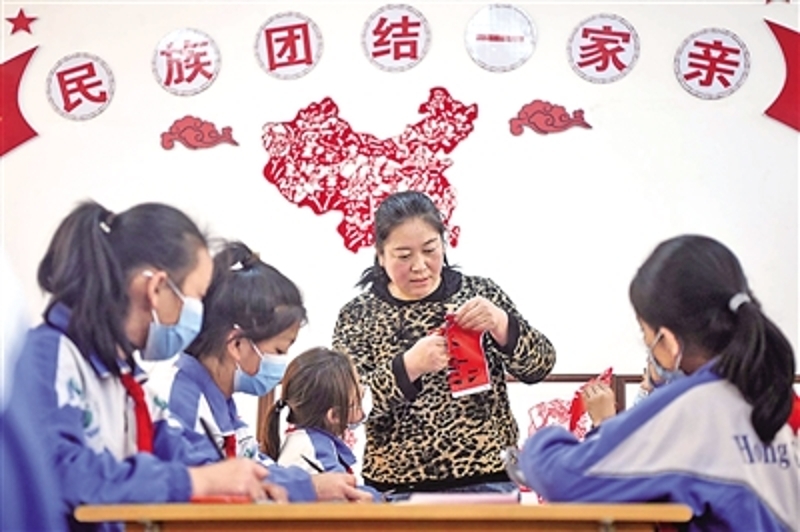 贺兰县洪广镇欣荣小学,一堂以“民族团结”为主题的剪纸课正在进行。记者 白茹 摄