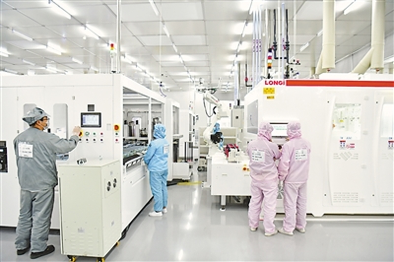 隆基10GW单晶电池项目总投资66亿元,一期5GW项目已建成投产,二期5GW项目计划明年10月底首线投产。项目生产工艺行业领先,电池片转换效率高、应用前景广泛,填补了宁夏高效单晶电池产品空白。(图片均由记者 王鼎 摄)