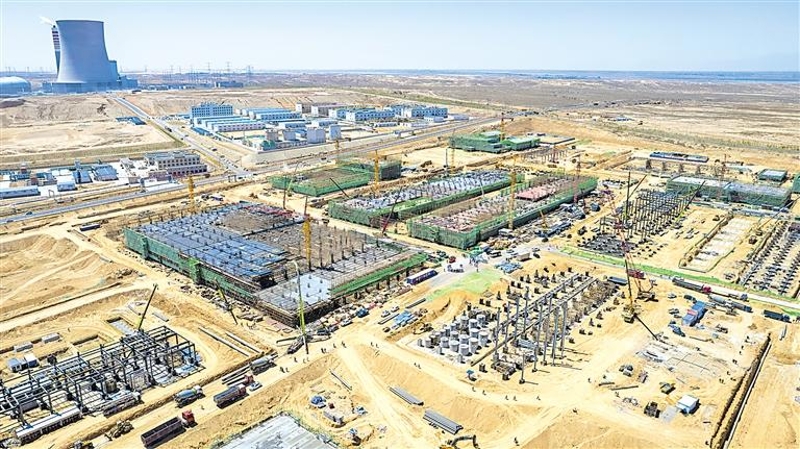 2022年5月,在平罗工业园区江苏润阳光伏材料及电池产业科技园项目区,一座座厂房在工人们夜以继日的奋战下拔地而起。待全部项目建成投产后,可实现销售收入263亿元,为5200人提供就业岗位。 记者 左鸣远 党硕 摄