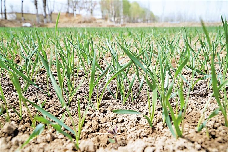“麦苗不怕冻,看这长势还不错。”谭振龙说,今年他共种植约700亩小麦,和去年一样采用科学套种模式。一行行麦苗边已预留好位置,为随后的玉米和大豆套种做足准备。