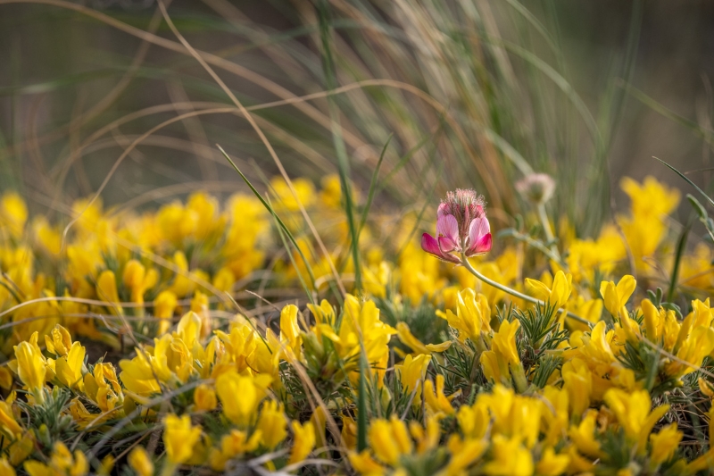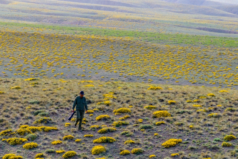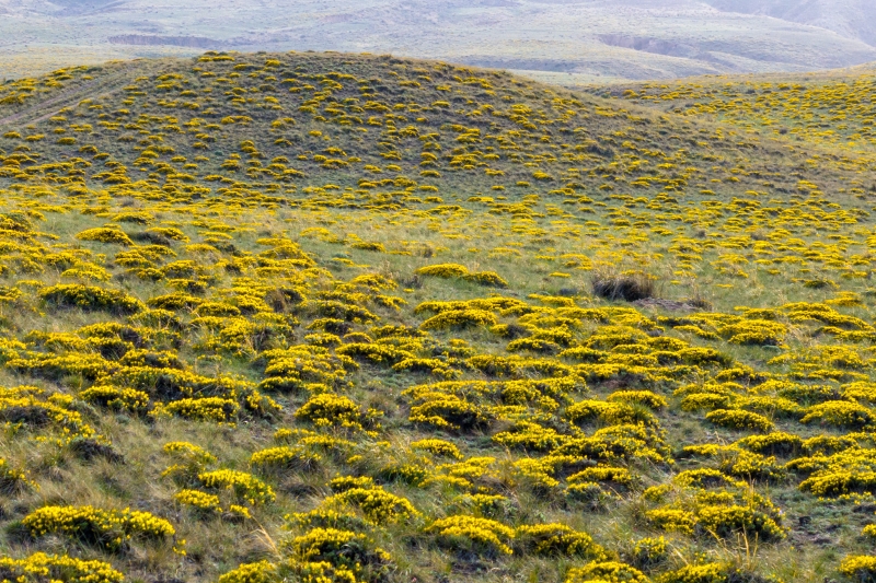 5月16日,在宁夏罗山自然保护区小罗山工作人员的帮助下,记者拍摄到大面积开满金色花朵的草原,在夕阳的照耀下宛若一幅金色的画卷,让人陶醉。 宁夏新闻网记者 祁瀛涛 摄