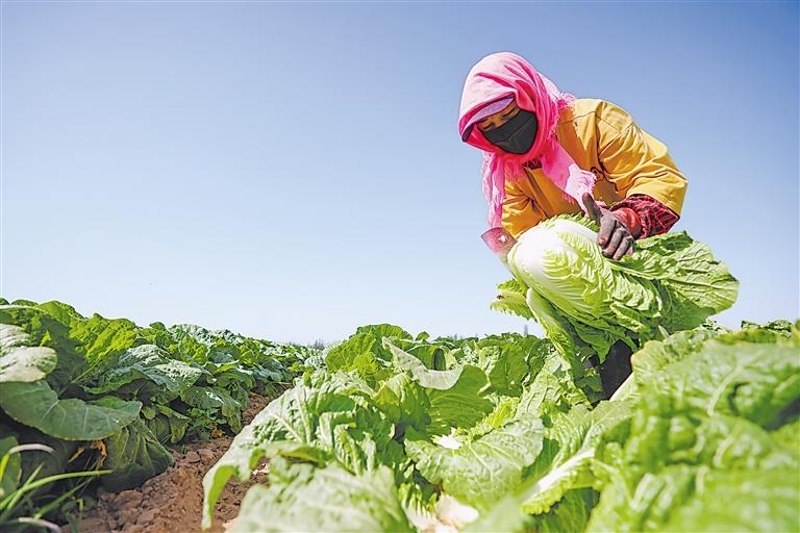5月30日,良田镇宁夏益民果蔬种植农民专业合作社蔬菜种植基地,白菜迎来丰收。图片均由记者 党硕 摄