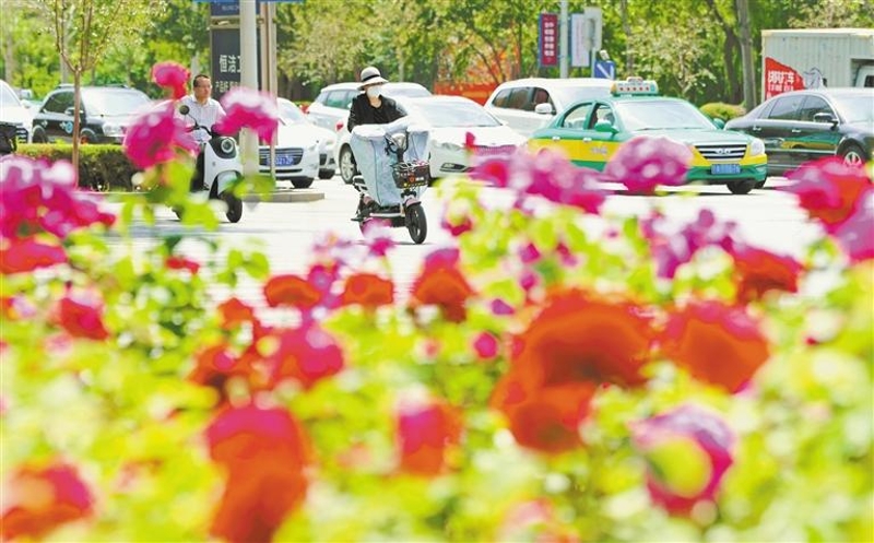 6月1日,银川市北京中路段沿线的月季迎来了盛花期,多种月季花竞相绽放。自2017年,北京中路定位打造为月季一条街,银川市绿化二处选用花期长、色彩艳丽的绯扇月季、粉扇月季2个特色新品种,持续提升城市颜值。 记者 马楠 王洋 摄