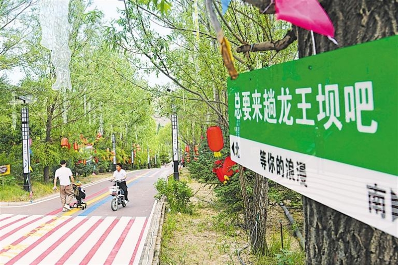 6月13日,游客漫步在龙王坝美丽的村道上。 记者 白茹 摄