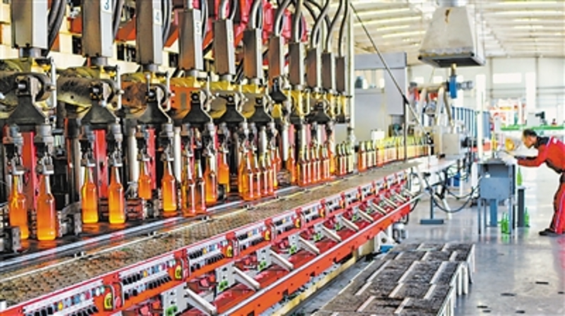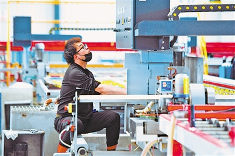 宁夏金晶科技有限公司生产线,工人查看设备运行情况。记者 马楠 摄