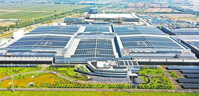 8月13日,记者航拍的TCL中环宁夏产业园新增四期5.67MW分布式光伏项目。目前,该项目已全容量并网发电。中环宁夏产业园分布式项目装机容量30MW,采用TCL中环G12高效叠瓦组件,年平均提供绿色电量3931.54万千瓦时,相当于节约标准煤量约1.57万吨,减少二氧化碳排放量约3.92万吨、二氧化硫排放量0.12万吨、氮氧化物排放量0.06万吨,等同于植树169.06万棵。该项目的并网发电,使得宁夏晶体生产基地的绿电使用比例达50%。记者丁建峰 摄