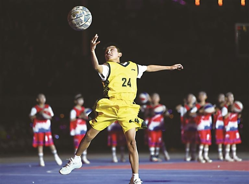 和姚明对话的西吉篮球少年王磊亮相开幕式。