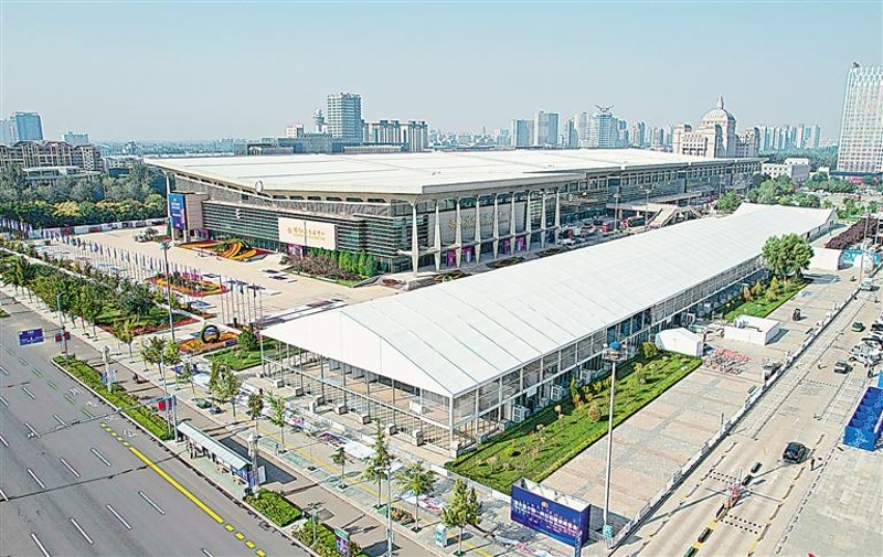 9月17日,空中俯瞰银川国际会展中心,第六届中国-阿拉伯国家博览会室外场馆已搭建完毕,绿色食品、国内特色商品、国外特色商品都将在此展出。据介绍,室外场馆将和银川国际会展中心一起形成4万平方米的展览区域,展区在原有新兴材料展、品牌商品展、医疗康养展的基础上,首次设置了中央企业展、智慧气象展、装备制造及技术展,进一步展现中阿在经贸、能源、基础设施等领域的合作优势。