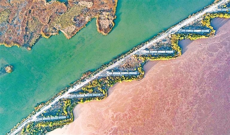 11月7日,从高空俯瞰平罗天河湾国家湿地公园,湿地水系与黄河堤防交相辉映,构成了一幅美丽画卷。 记者 王晓龙 摄
