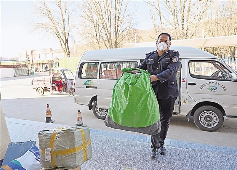 11月29日,一辆载着快递的微公交来到隆德联财镇客货邮商旅综合便民服务点,工作人员将一大包快递件转交给便民服务点。今年,隆德县依托城乡客运一体化,探索采用“客货邮商旅”融合发展模式,在建制村通公交的基础上,加强客运企业同中国邮政、顺丰等企业的合作,推进客运、物流、快递、供销、电商、乡村旅游等融合发展,让农民幸福生活步入快车道。 记者 左鸣远 赵磊 见习记者 杨嘉琪 摄