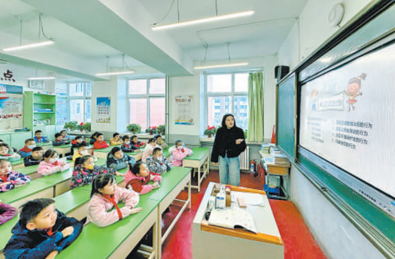 12月4日是第十个国家宪法日,银川市兴庆区唐徕小学主题班会上,老师为孩子们开展普法教育。当日,唐徕小学举办了“与法同行,护航成长”主题活动。 记者 马楠 王洋 摄