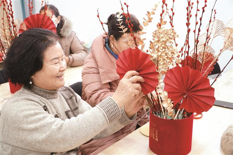 看书、画画、插花、跳舞……1月2日,走进社区日间照料中心,不断传来老人和小孩的欢笑声。该中心设有阅览室、棋牌室、舞蹈室、康复理疗室、心理咨询室等功能室,为老人提供了丰富多样的活动和服务。