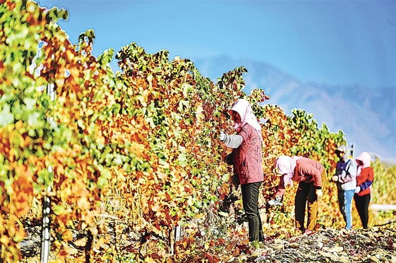 深秋,随着采摘季结束,经过果农剪枝后的葡萄树逐渐进入休眠期,静待来年的丰收。(资料图片)