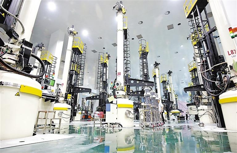 银川隆基光伏已形成年产15GW单晶硅棒和15GW切片生产能力,成为全球最大的单晶硅制造生产基地。 记者 王晓龙 摄