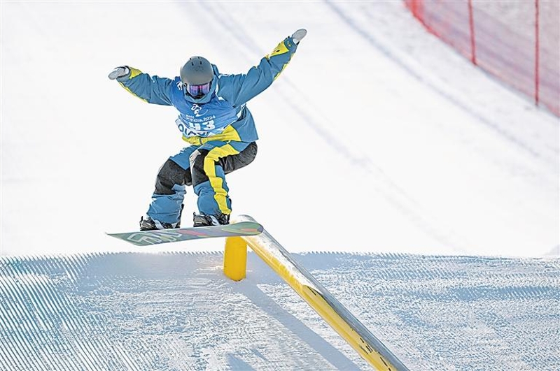 2月23日,程坤在青年组男子单板滑雪坡面障碍技巧比赛中,以90.80分的成绩获得冠军。