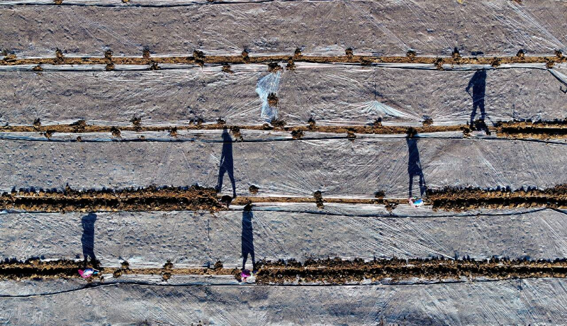 3月20日,在贺兰县常信乡光明村供港蔬菜种植基地,农民正忙着覆膜。