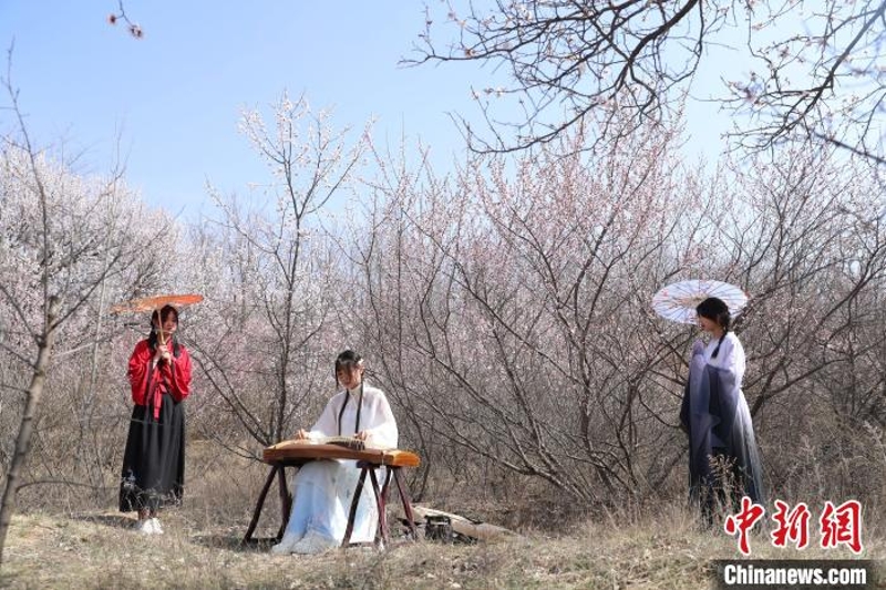 远望山花,从彭阳县城区向开满山花、层峦叠嶂的梯田仰望,原本属于黄土的梯田像是被披上了一层“粉白”的外衣。近看桃花,在彭阳悦龙山的林间小道漫步,夹道相迎的桃花、阵阵扑鼻的花香味、游客身着汉服以及时而传出的古筝、笛子演奏的声音,好像是把人带入了属于西北的“桃花源”。