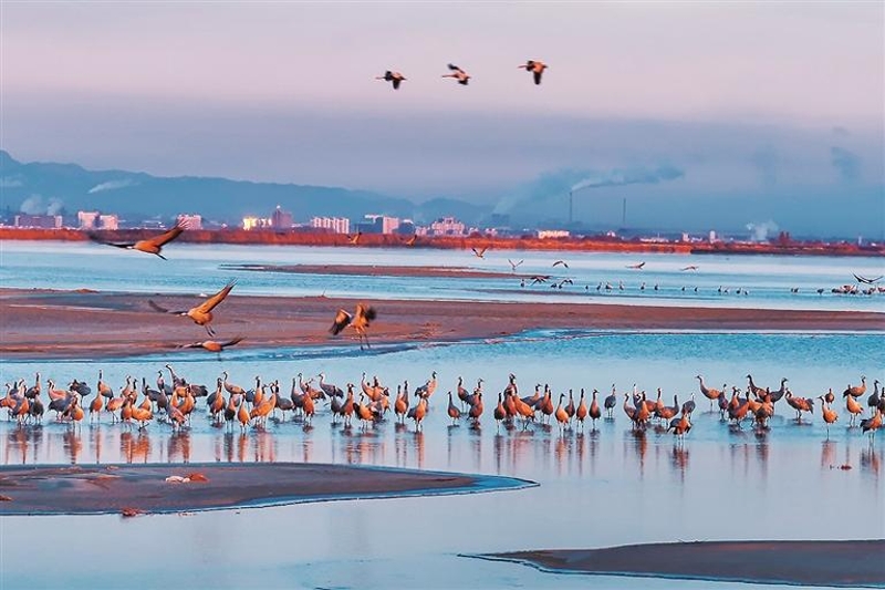 “跟踪拍摄灰鹤等鸟类多年,我亲眼见证了黄河流域石嘴山段的生态环境变化,这里已成为它们最宜居的冬日之家。”陈小组说。
