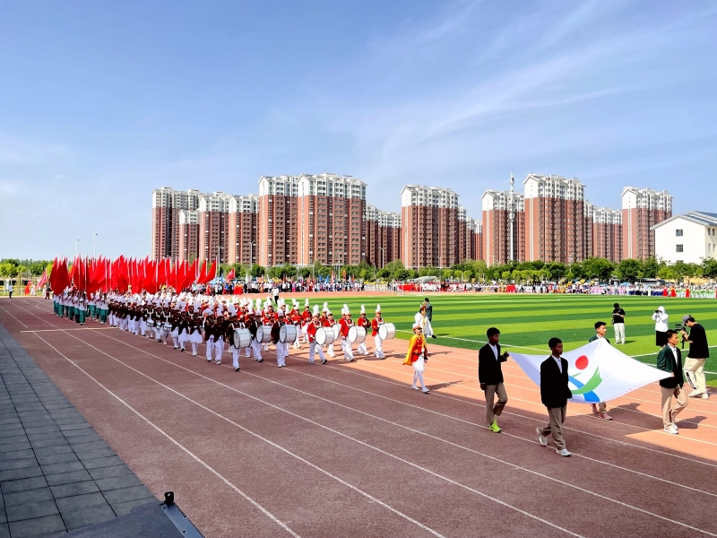 开幕式上,随着激昂奋进的《运动员进行曲》响起,国旗队、鼓乐队及各学校运动员方队迈着整齐矫健的步伐有序入场。各学校代表队展示出独特的风格和亮点,他们或是身着民族服饰,或是脚踩电动踏板,或是手持折扇……随处可见的传统文化元素与科技创新力量交织交融,让人眼前一亮。