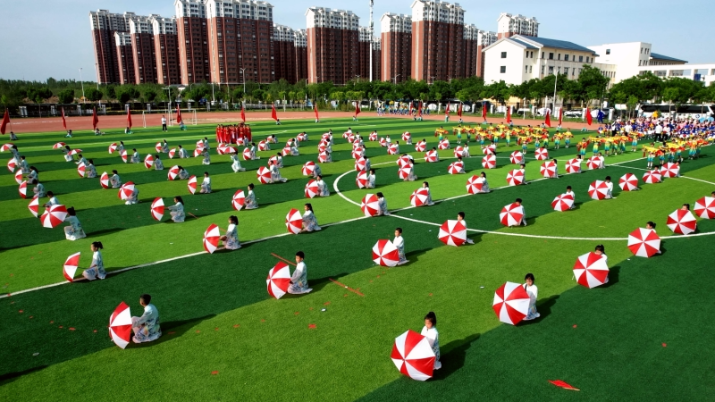 在随后的团体操方队展演中,《向上吧,少年!》《龙舞鼓悦》《籽籽童心 启航梦想》《鼓乐八小》等气势磅礴的团体表演相继登台亮相,9所学校1600余名学生用体能操展现出身体素质和运动能力的双提升,为运动员们提振精神,鼓舞士气,展现出金凤师生昂扬向上的风采风貌和团结拼搏的竞技精神。