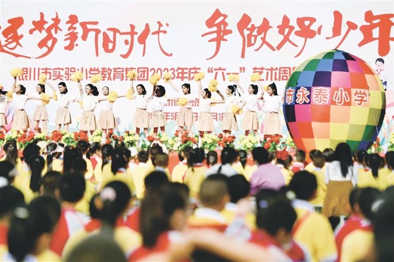 银川市实验小学教育集团艺术周暨表彰活动在银川市永泰小学举行(资料图片)。学校创新形式、丰富载体,推动铸牢中华民族共同体意识教育有形有感有效。 记者 马楠 王洋 摄