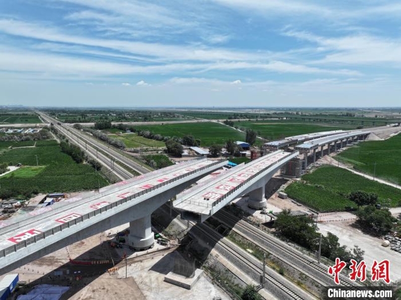 7月4日,宁夏在建最大跨度分离式转体桥完成转体。宁夏交通运输厅 供图