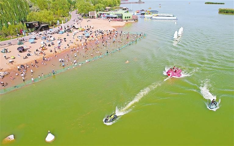 7月30日,市民在阅海湾水上公园体验水上摩托艇。近年来,银川市积极构建人水和谐的水域岸线生态环境,不断推进美丽幸福河湖建设,全力打造“河畅、水清、岸绿、景美、人和”的河湖水环境。记者 左鸣远 摄
