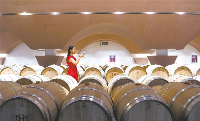 志辉源石酒庄内,游客在电视剧《星星的故乡》取景点打卡、品鉴葡萄酒。